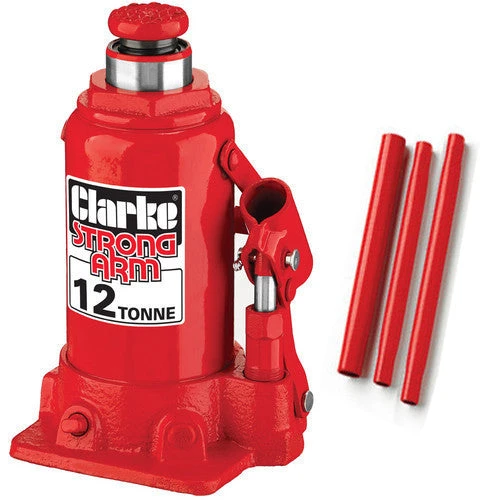 This professional quality bottle jack has tough cast iron base with screw in components.