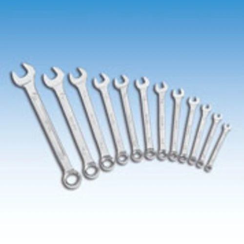 Set of 12 Metric Combination Spanners. Forged in chrome vanadium steel with polished head. Ring end of spanner is offset at 15Β°