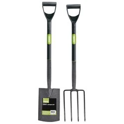 Carbon steel fully hardened and tempered with plastic coated steel cored shaft with special “Y – dee” handle. Shrink-wrapped together for security.