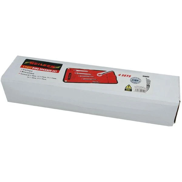 5pc Extra Long Ring Spanner Set Sizes – 8 x 10. 12 x 14. 13 x 15. 16 x 18. 17 x 19mm CRV